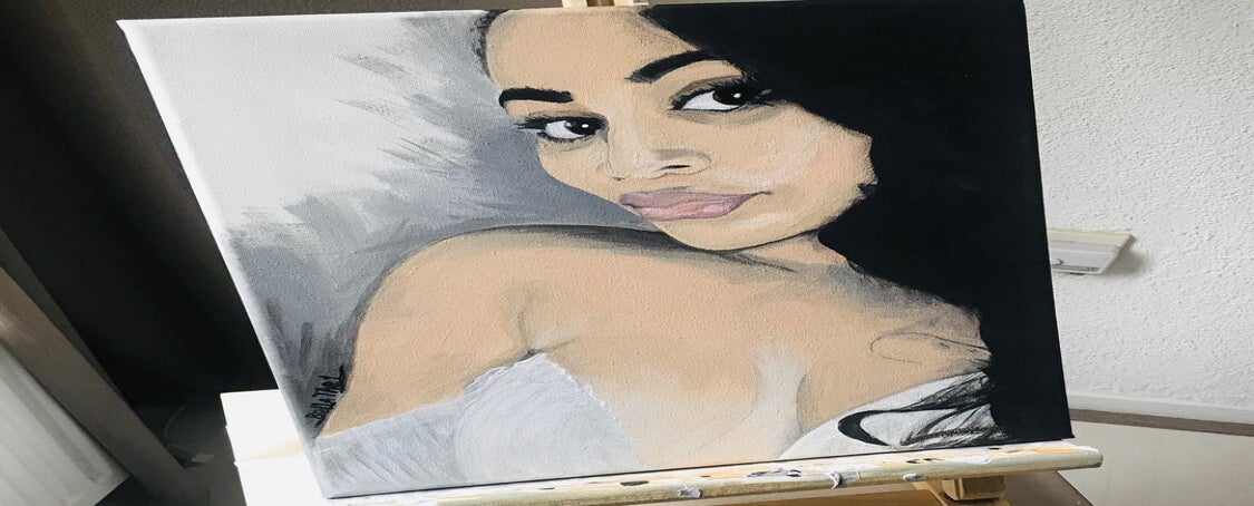 Uw favoriete portretfoto op doek geschilderd met acrylverf in kleur of zwart-wit. U heeft de mogelijkheid om te kiezen voor een realistisch schilderij of abstract.